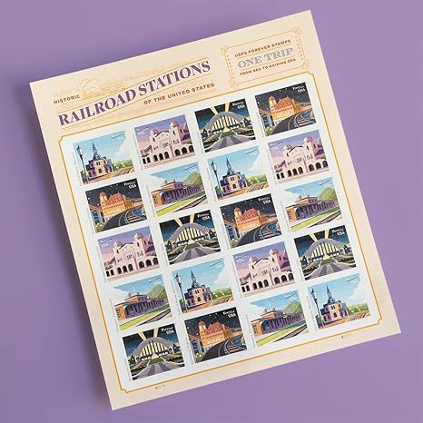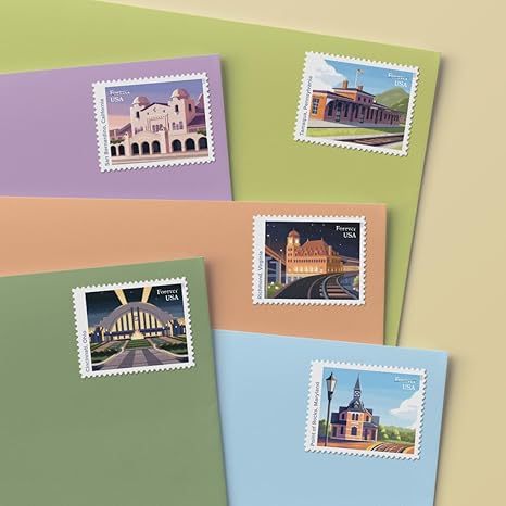 The “Historic Railroad Stations” stamps issued by the U.S. Postal Service celebrate the history of train travel and the significant role railroad stations played in American development.